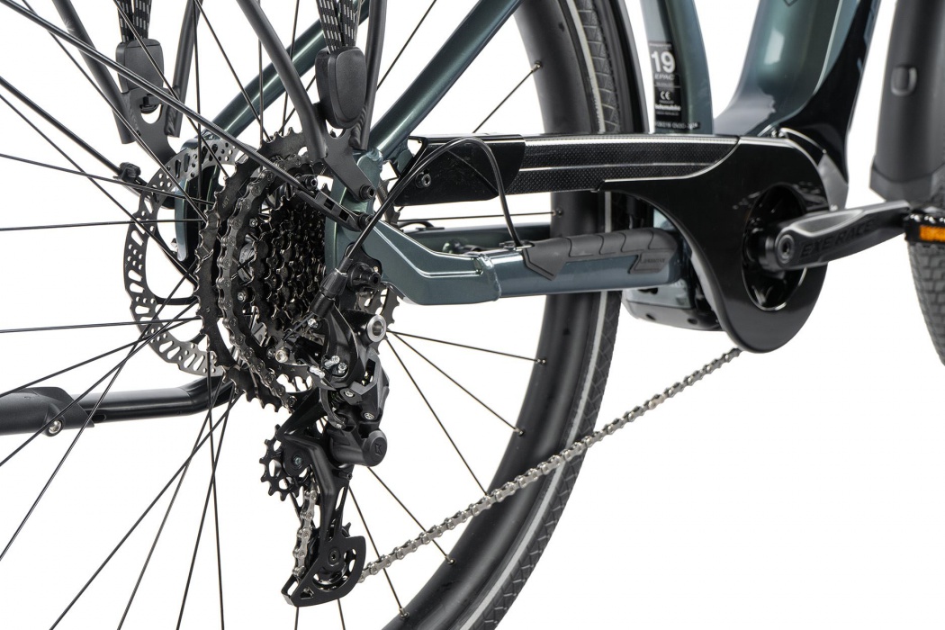 Kolo je vybaveno novinkovou řadou pohonu Shimano CUES (9 speed), která byla vyvinuta speciálně pro elektrokola, a jejich zvýšené nároky na výdrž, odolnost a životnost komponentů řadící linky. Shimano CUES patří kvalitativně zhruba mezi klasické osvědčené řady Shimano DEORE a SLX.